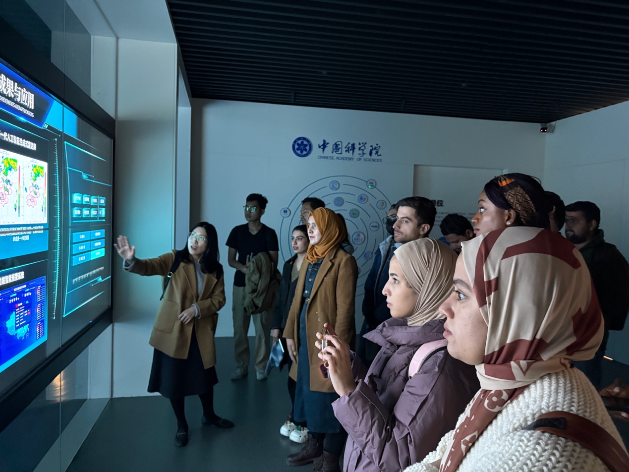 On October 28, 2025, the "Global Environment Outlook" course of the International College, University of Chinese Academy of Sciences (UCAS), organized a visit for 19 international students to the National Major Science and Technology Infrastructure — the Earth System Numerical Simulation Facility (also known as “Huan”), located in Huairou Science City, Beijing. The visit was guided by lecturers from the Institute of Atmospheric Physics, Chinese Academy of Sciences, who provided in-depth explanations and visual demonstrations to help students better understand China’s latest scientific achievements and technological innovations in the field of Earth system science.